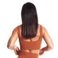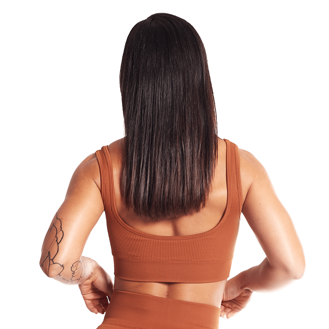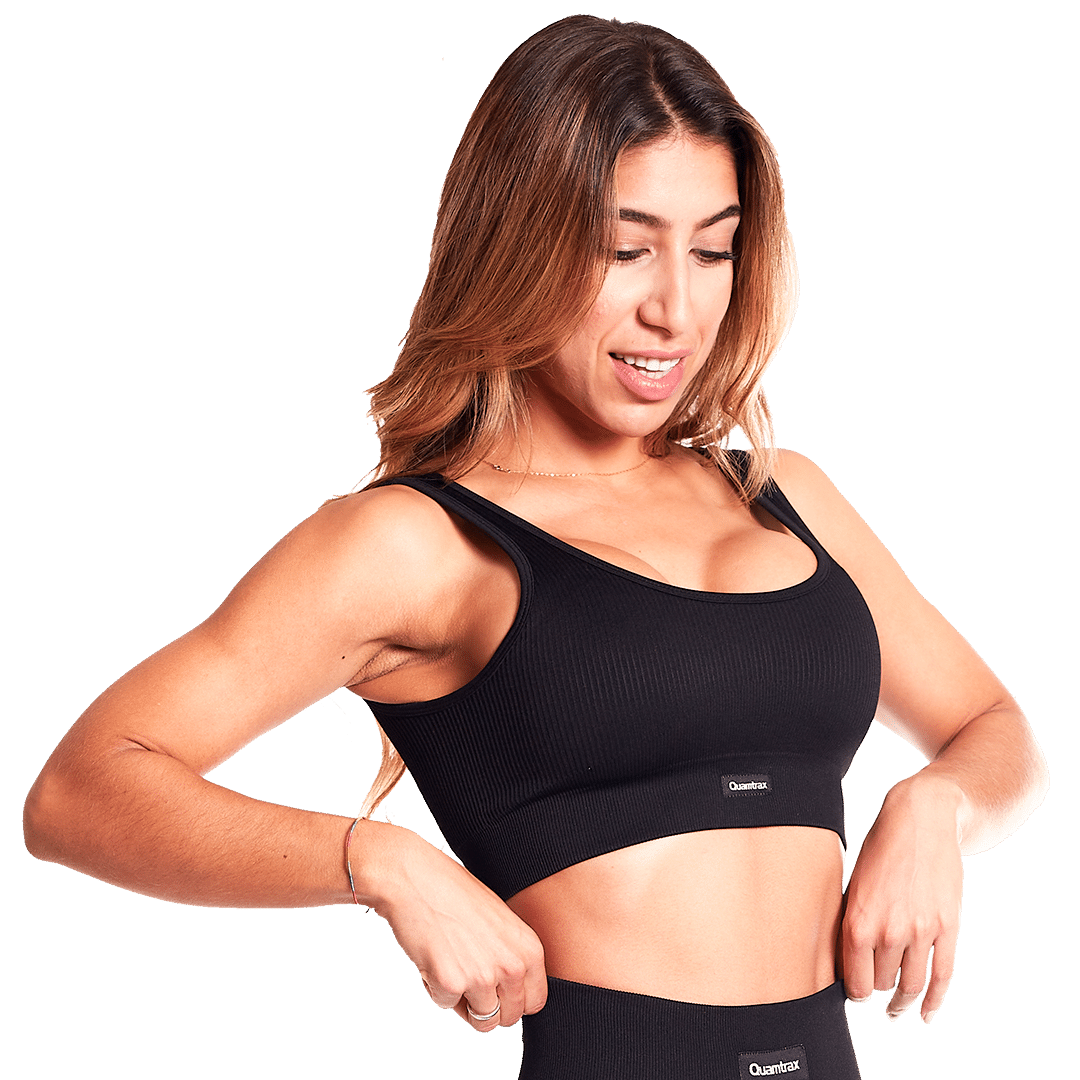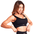 Crop top with “U” neckline. Its ergonomic fabric prevents chafing and provides maximum comfort while you train. With elastic under the chest for maximum support.