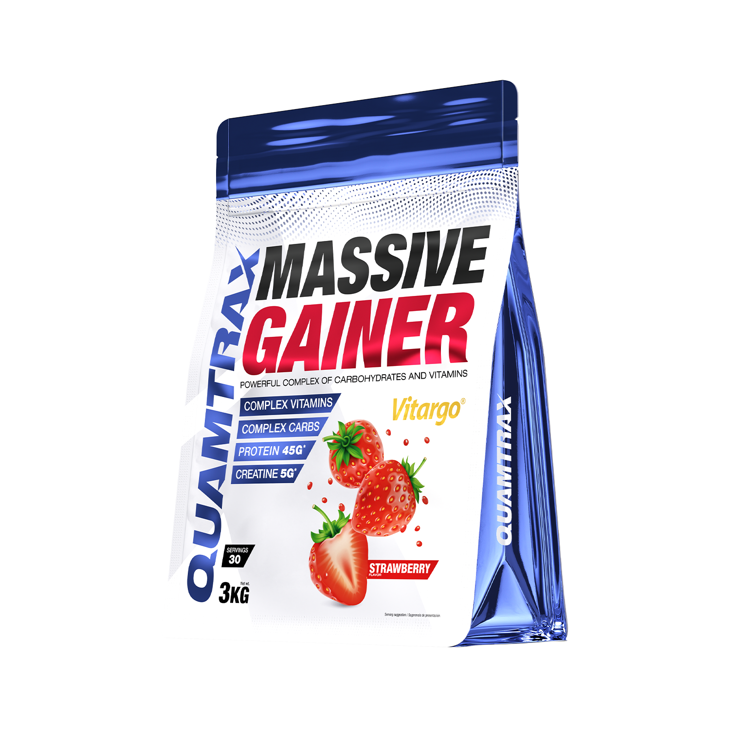 Maltodextrina (33,9%), harina de avena (33,9%), concentrado de proteína de suero de leche 80% (10%) (emulgente: lecitina de soja), caseína micelar (10%) (leche), amilopectina Vitargo® (5%), creatina monohidrato (2,5%), triglicéridos de cadena media (MCTs) (2%), aromas, emulgente (lecitina de soja), edulcorante (sucralosa), mezcla vitamínica (maltodextrina, vitamina C (ácido L-ascórbico), vitamina B3 (niacinamida), vitamina E (acetato de D,L-alfa-tocoferilo), vitamina B6 (clorhidrato de piridoxina), vitamina B2 (riboflavina), vitamina B1 (clorhidrato de tiamina), ácido fólico (ácido pteroilmonoglutámico), biotina y vitamina B12 (cianocobalamina)) y sal.