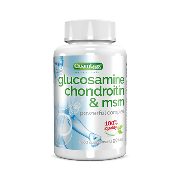 Sulfato de Glucosamina, Sulfato de Condroitina, MSM (Metilsulfonilmetano), maltodextrina e excipientes: estearato de magnésio e E-464.
